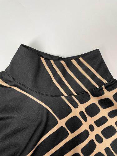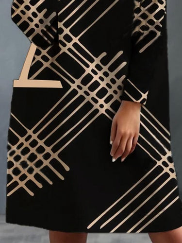 A-Line Long Sleevesポケットは、ハイネックミニドレスを印刷しました