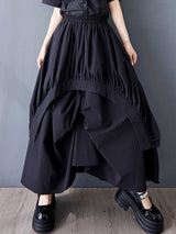 A-lineの緩い非対称弾性プリーツポケットソリッドカラースカートボトム