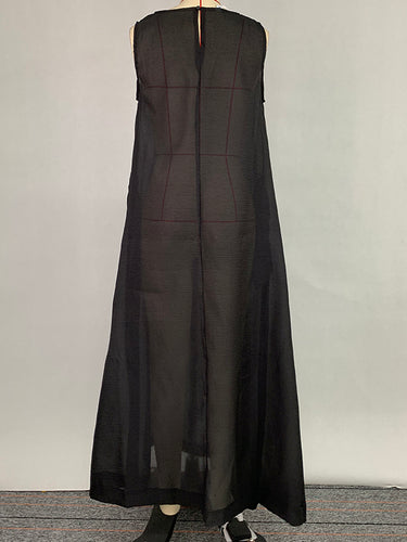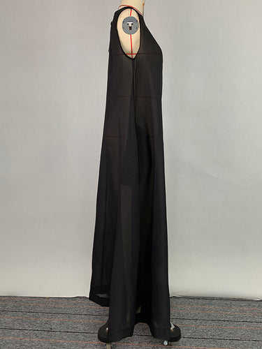A-lineルーズポケットシースルーソリッドカラーラウンドネックカバーアップミディドレス