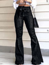 フレアパンツハイウエストソリッドカラー縛られたウエストジャンパンツボトム