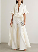 フレアスリーブハーフスリーブフリルトリムソリッドカラーディープVネックブラウス&シャツトップアウターウェア