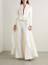 ハイローラップファルバラソリッドカラーVネックシャツトップ&パンツ2個セット