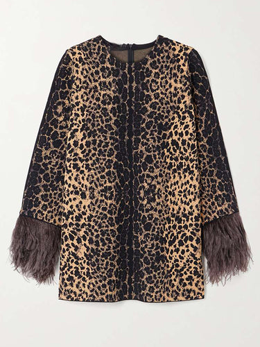 長袖フェザーヒョウラウンドネックパンツパンツセットTシャツトップスツーピースセット