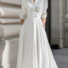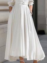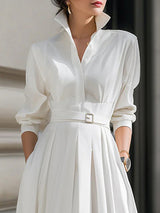 Long Sleeves Loose Belted Pockets Solid Color Stand Collar Maxi Dresses