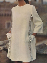 長袖のゆるいスパンコールのソリッドカラーラウンドネックミニドレス