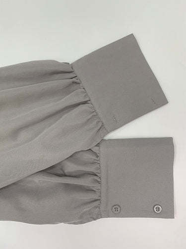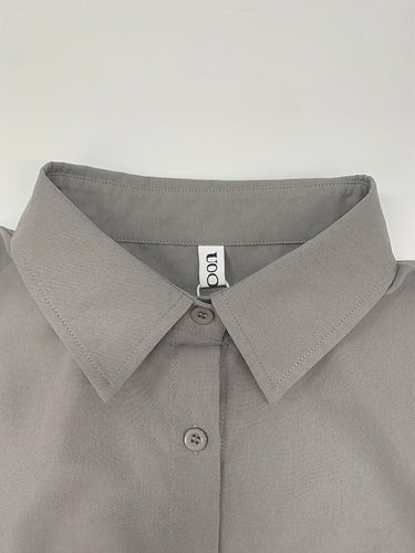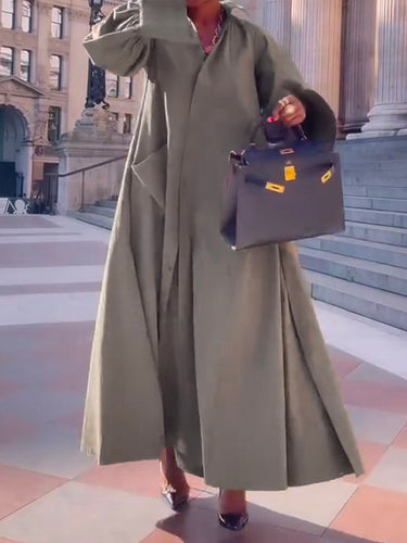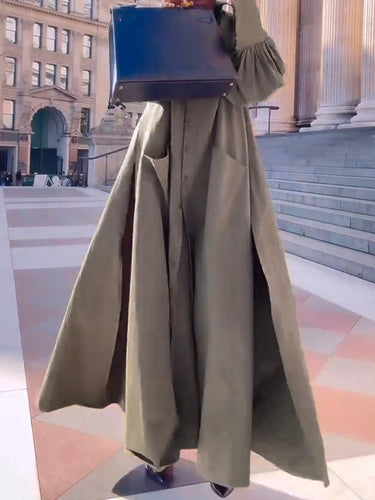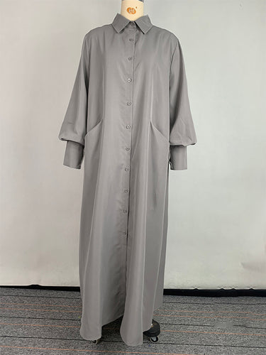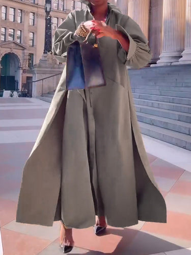 長袖ソリッドカラースプリットジョイントスプリットサイドラペルマキシドレスシャツドレス