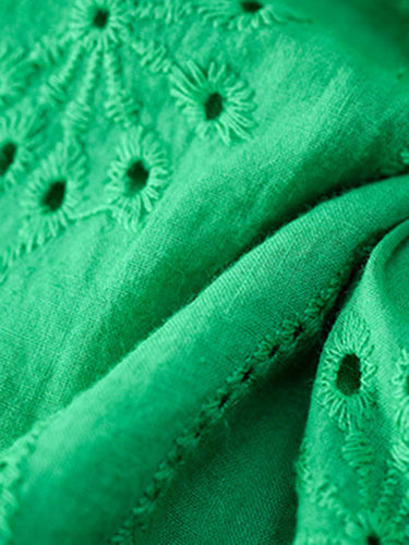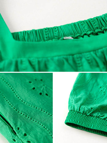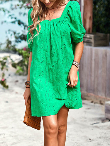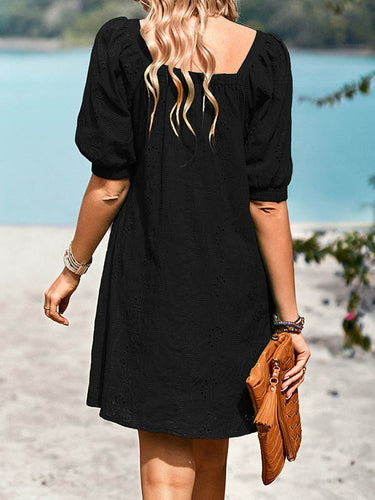ゆるいパフ袖JACQUARDソリッドカラースクエアネックミニドレス