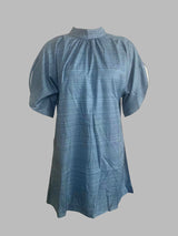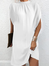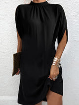 ゆるいラグランスリーブソリッドカラーモックネックミニドレス