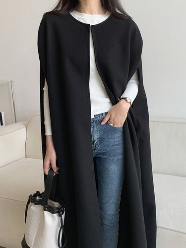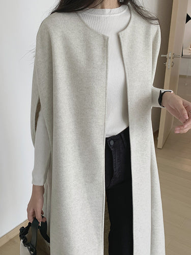 ゆるいノースリーブのソリッドカラーラウンドネックケープアウターウェア