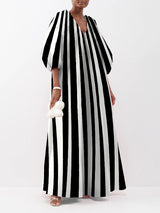 パフスリーブ4分の3スリーブストライプVネックマキシドレス