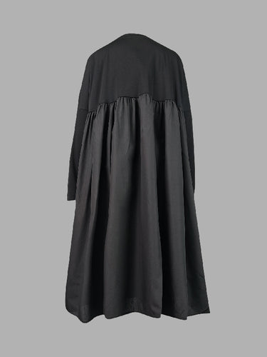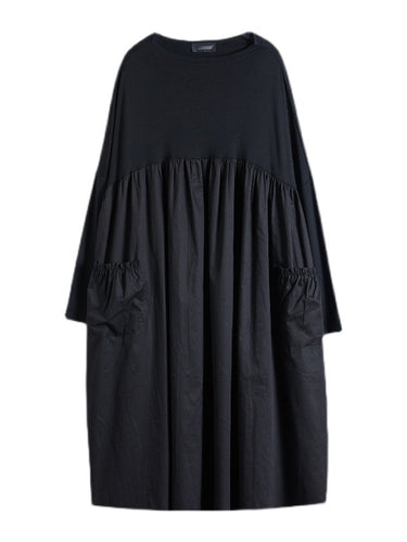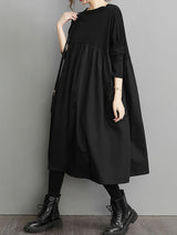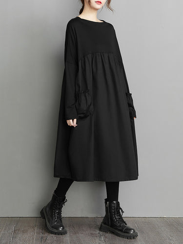 シンプルなルーズブラックスプリットジョイントロングスリーブミディドレス