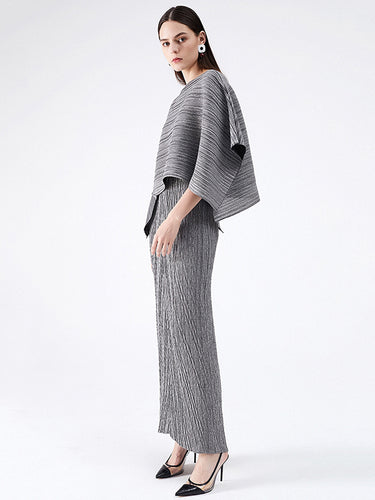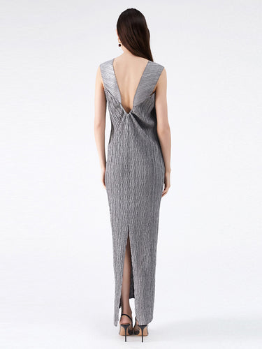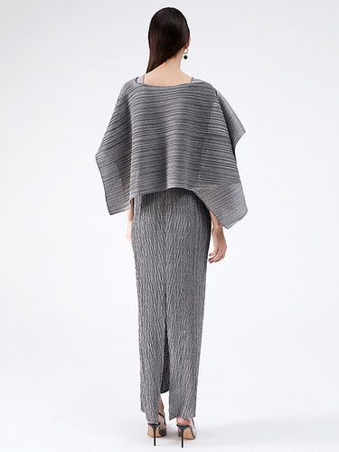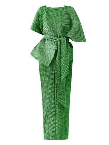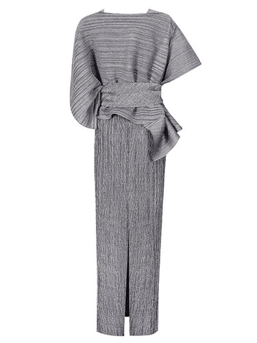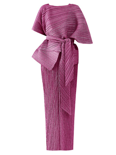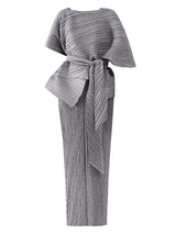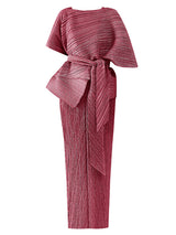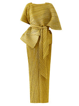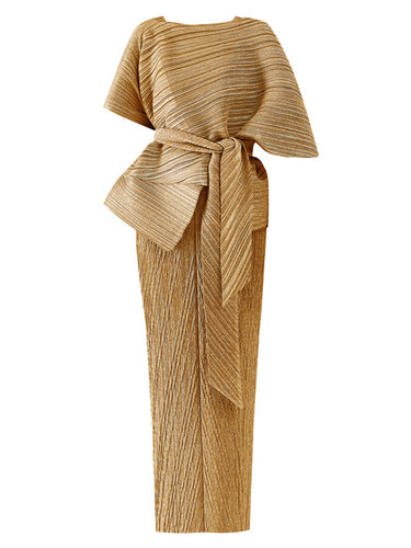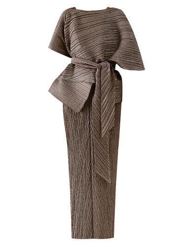 アーバンルーズソリッドカラー縛られたプリーツトップ&Vバックベストドレス2ピースセット