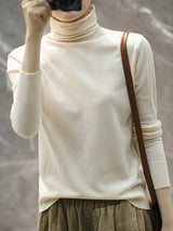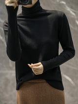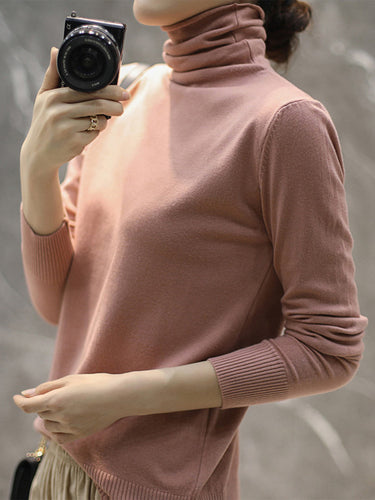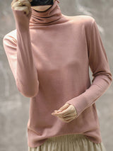 ソリッドカラーヒープカラー長袖ニットウェアトップス