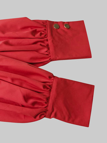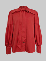 Puff Sleeves Bowknot Solid Color Stand Collar Blouses&Shirts Tops