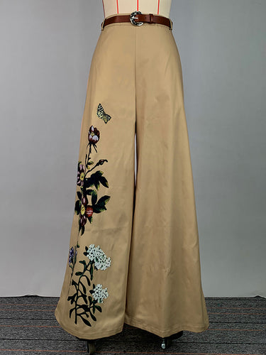 ハイウエストのゆるいベルト付きフラワープリントポケットパンツのズボン