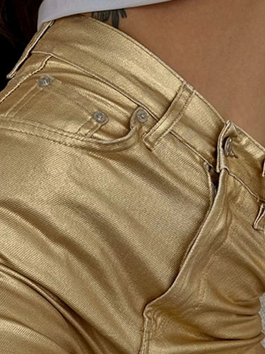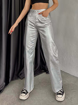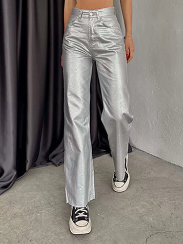 ワイドレッグポケットソリッドカラーパンツのズボン
