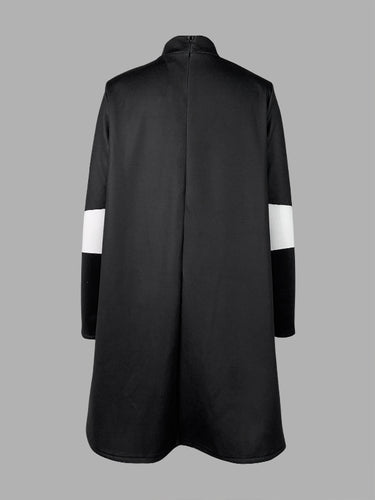 A-Line Long Sleeves Polka-Dot Split-Joint Mock Neck Mini Dresses
