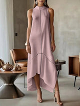 ノースリーブスプリットジョイントスプリットサイドハイネックマキシドレス