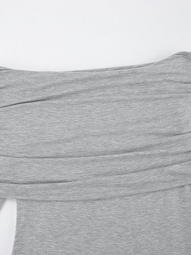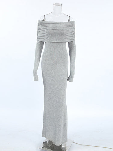 長袖スキニープリーツの固体色のスプリットジョイントオフショルダーイブニングドレスマキシドレス