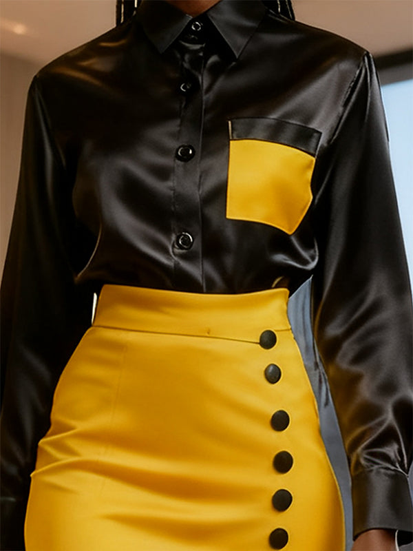 Long Sleeves Loose Buttoned Pockets Lapel Blouses&Shirts Tops