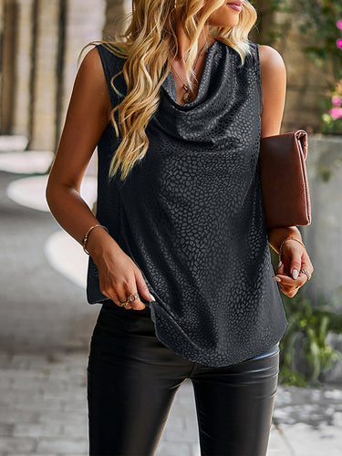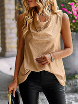 ゆるいノースリーブヒョウヒープカラーベストトップ