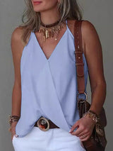 ゆるいノースリーブのソリッドカラースパゲッティネックベストトップ