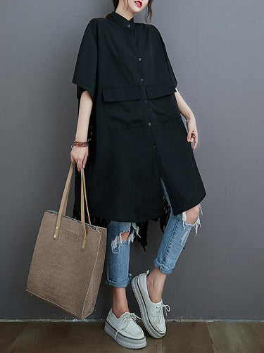 ゆるいスプリットジョイントホローソリッドロングブラウス