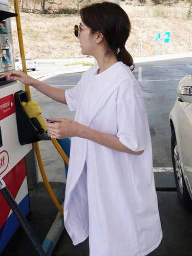 しっかりと緩いシンプルなスプリットフロントTシャツトップ