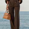 ハイウエストのゆるいプリーツの固体色のスプリットジョイントパンツのズボン