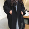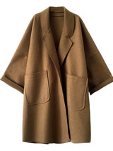 長袖のゆるいボタン付きポケットソリッドカラースプリットジョイントノッチ付きカラーウールコート