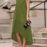 A-Line High-low Solid Colorスプリットジョイントジッパーラウンドネックマキシドレス