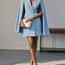 ケープスプリットジョイント縛られたウエストVネックミニドレス