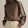 長袖ルーズコントラストカラースプリットジョイントハイネックプルオーバーセータートップス