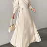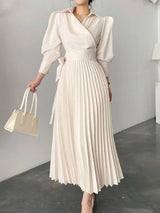 オフィスプリーツされた非対称の固体色のラペルマキシドレス