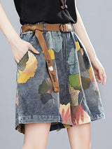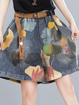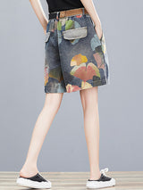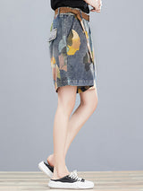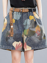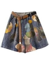 オリジナルのフローラルワイドレッグデニムショーツボトムズ