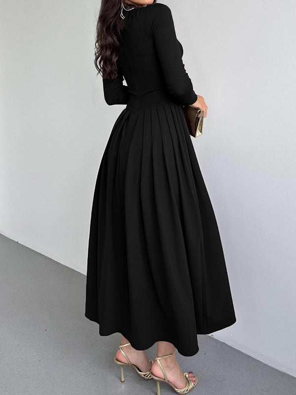 A-Line Bodycon Asymmetric Pleated Solid Color Split-Joint One-Shoulder Maxi Dresses