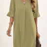 A-lineフレアスリーブプリーツフリルのソリッドカラースプリットジョイントVネックミニドレス