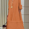 A-line長袖の層状のプリーツポケットソリッドカラースプリットジョイントラペルミディドレスシャツドレス