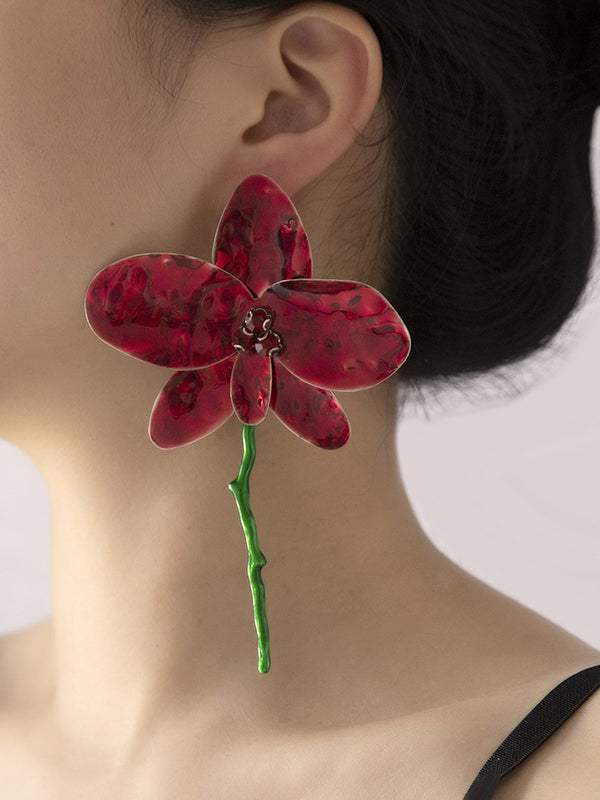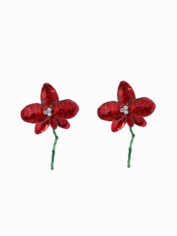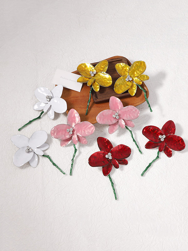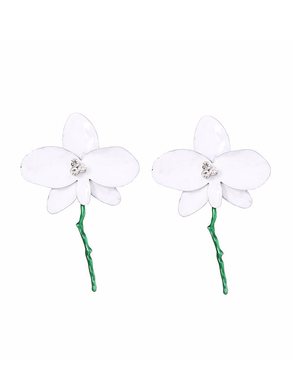 Flower Shape Rhinestone Shiny Earrings Accessories