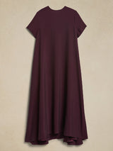 ゆるい半袖ポケットソリッドカラーラウンドネックマキシドレス