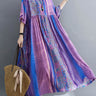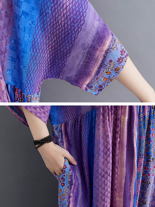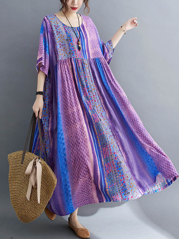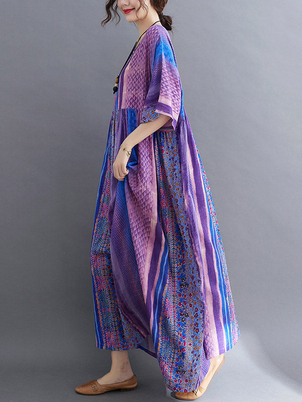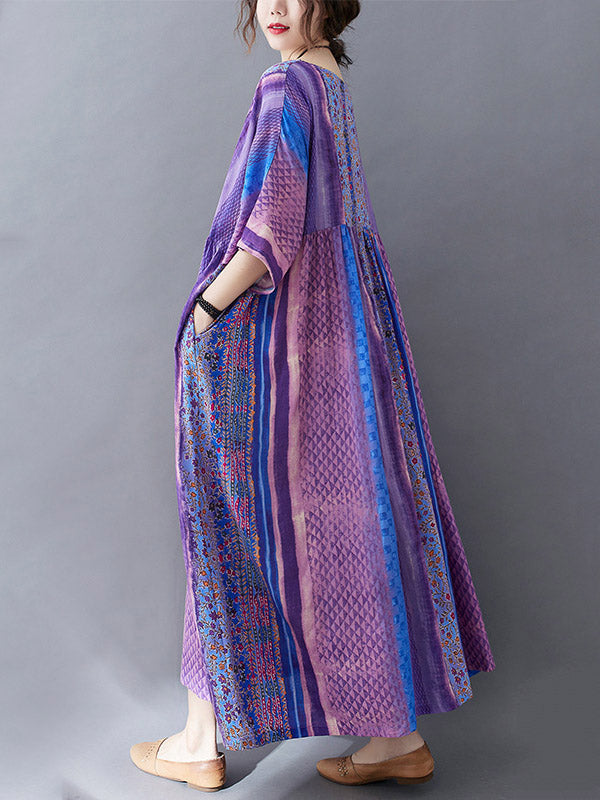 ヴィンテージサイドポケットストライプの花の印刷されたミディドレス