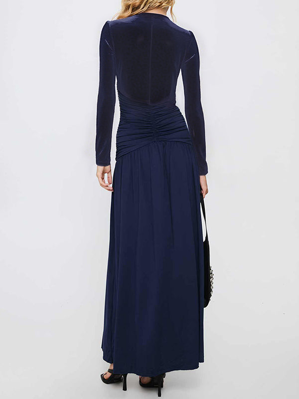 A-Line Bodycon Pleated Solid Color Split-Joint Split-Side Deep V-Neck Maxi Dresses