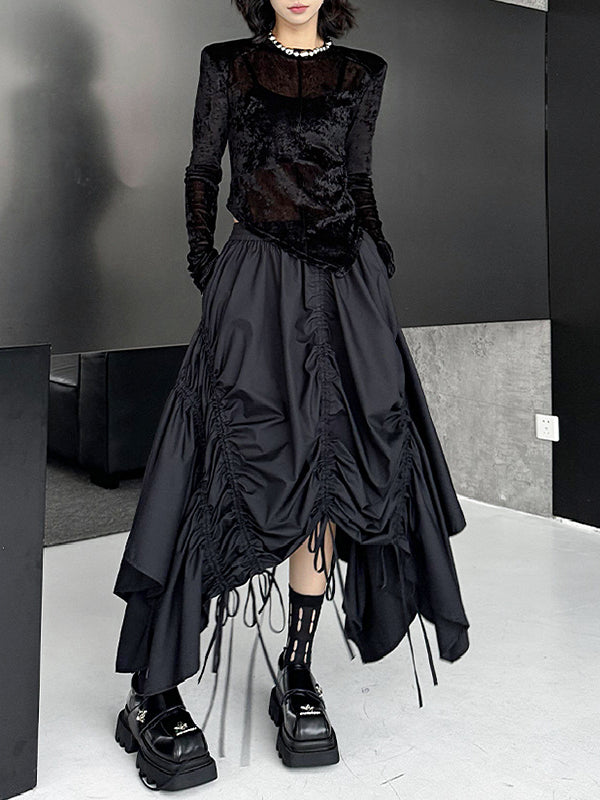 A-Line Elasticated Waist Asymmetric Drawstring Pleated Solid Color Skirts Bottoms
