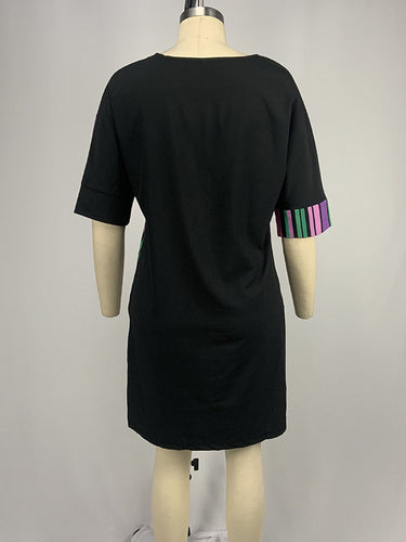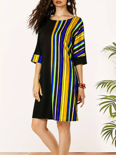 A-Line Half Sleeves Asymmetric Contrast Color Striped Round-Neck Mini Dresses