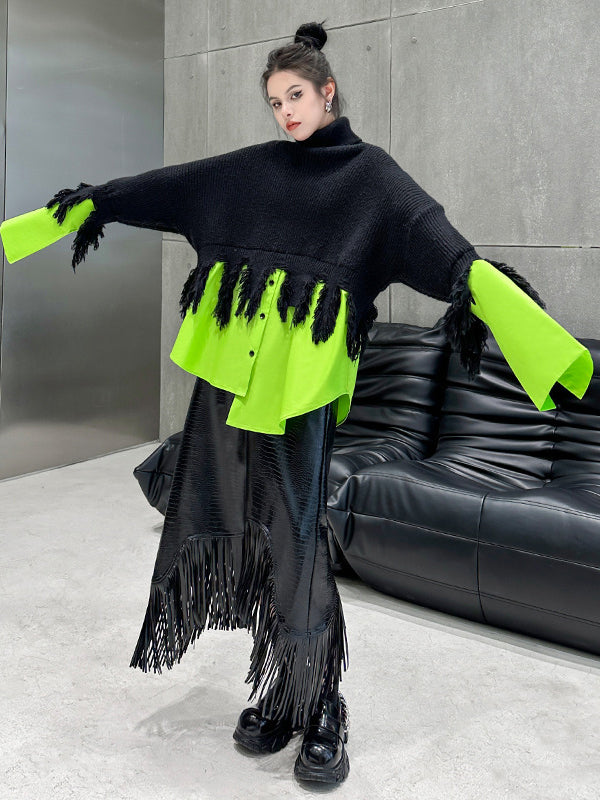 A-Line Irregularity Asymmetric Buttoned Crocodile Texture Solid Color Tasseled Skirts Bottoms