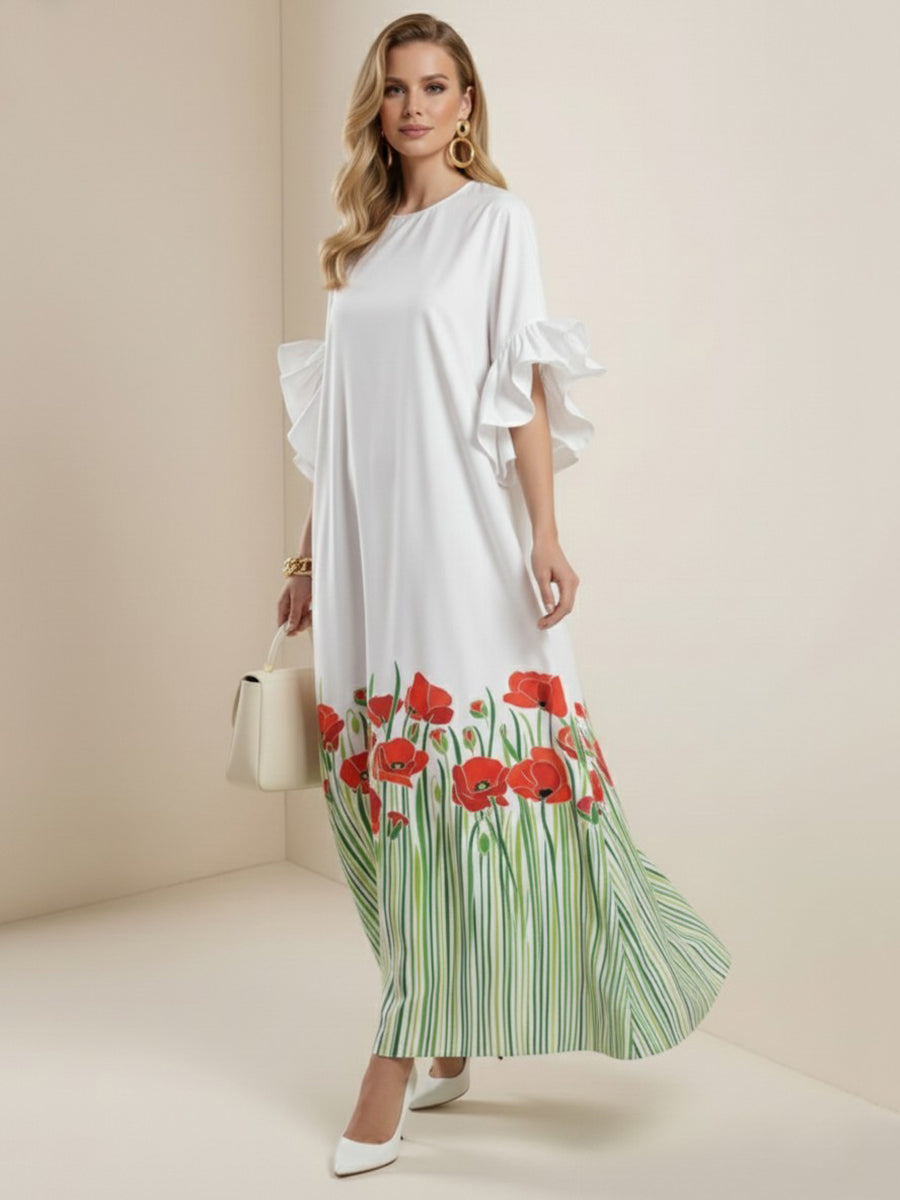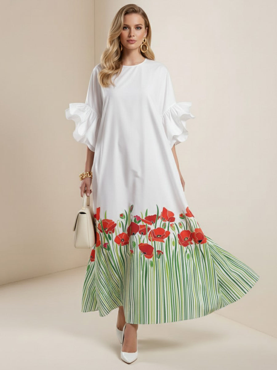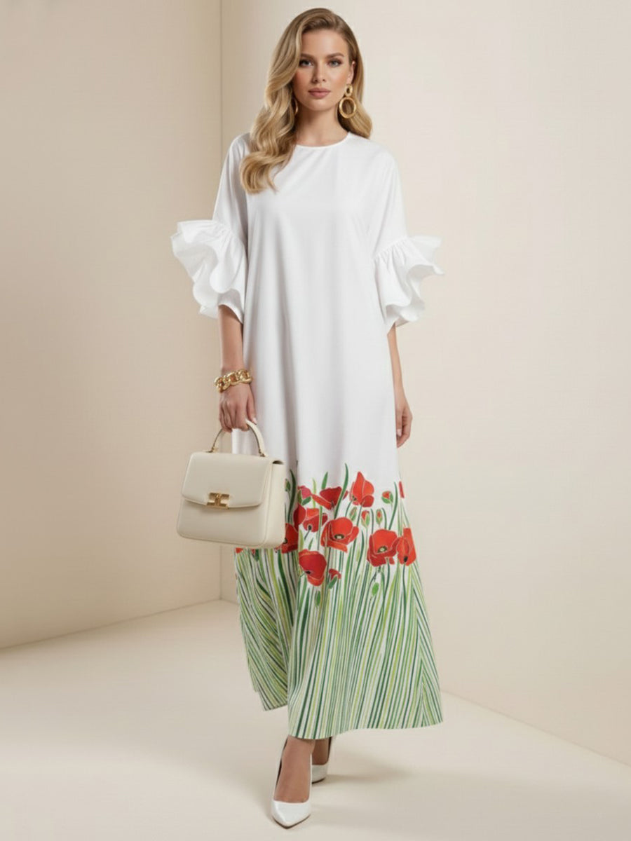 | Silhouette | Loose , A-line , Three-quarter Sleeves , Ruffle Sleeves |
