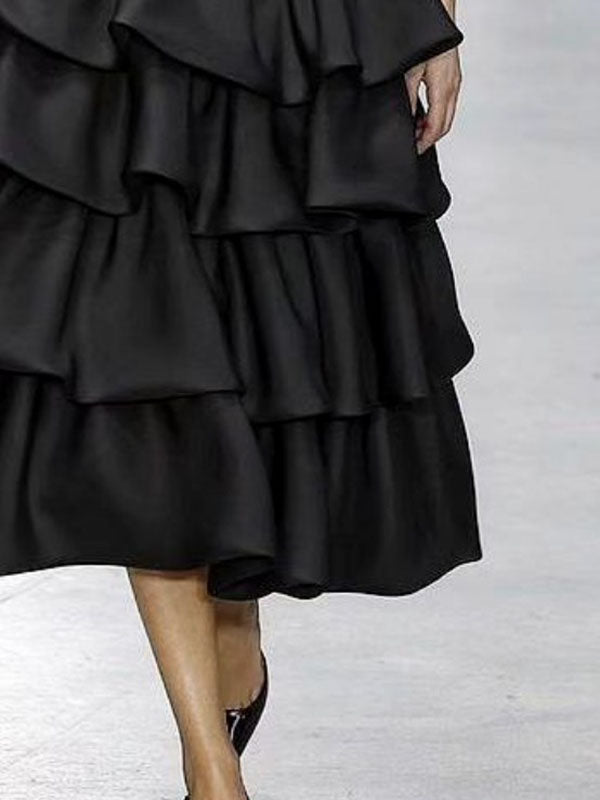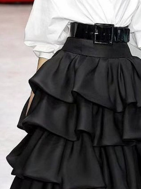 A-line Loose Falbala Layered Solid Color Skirts Bottoms
