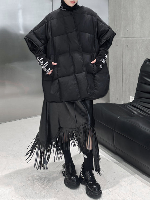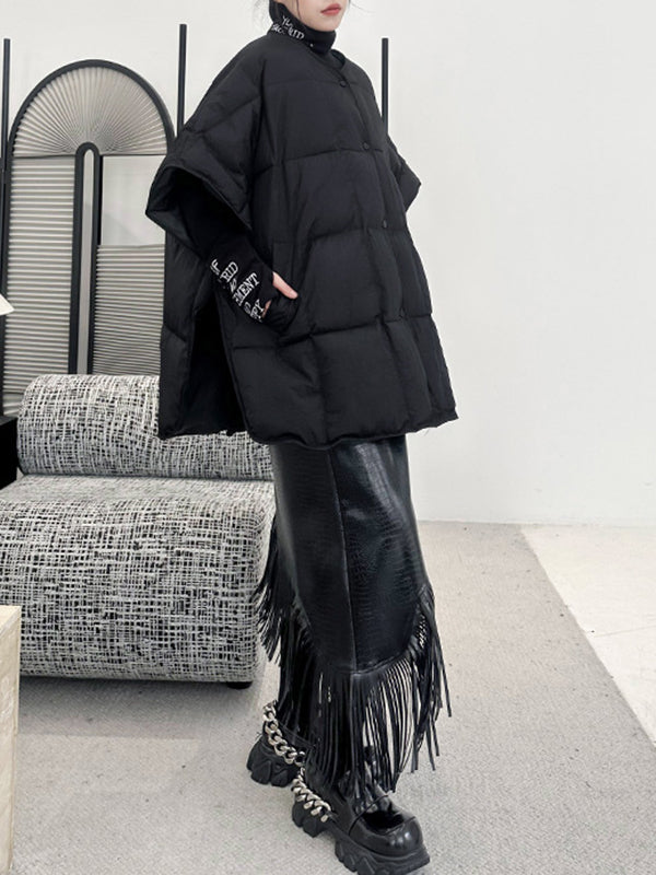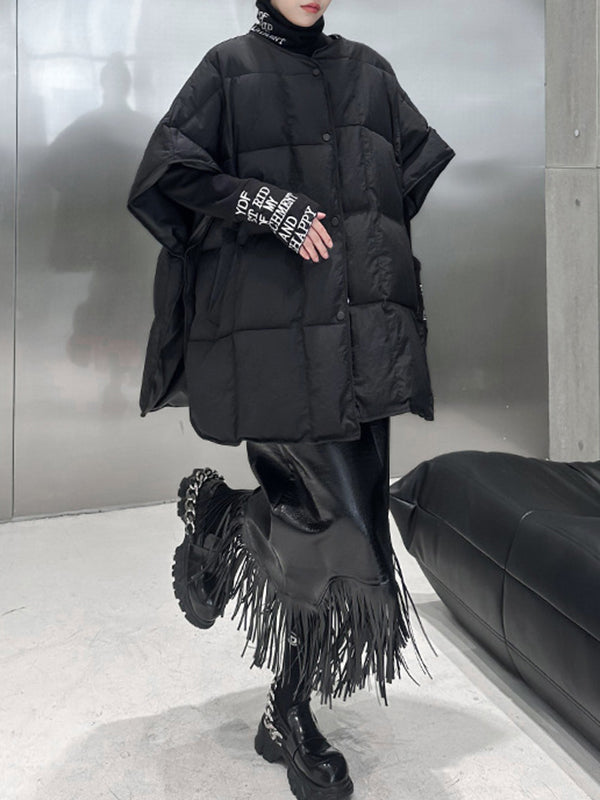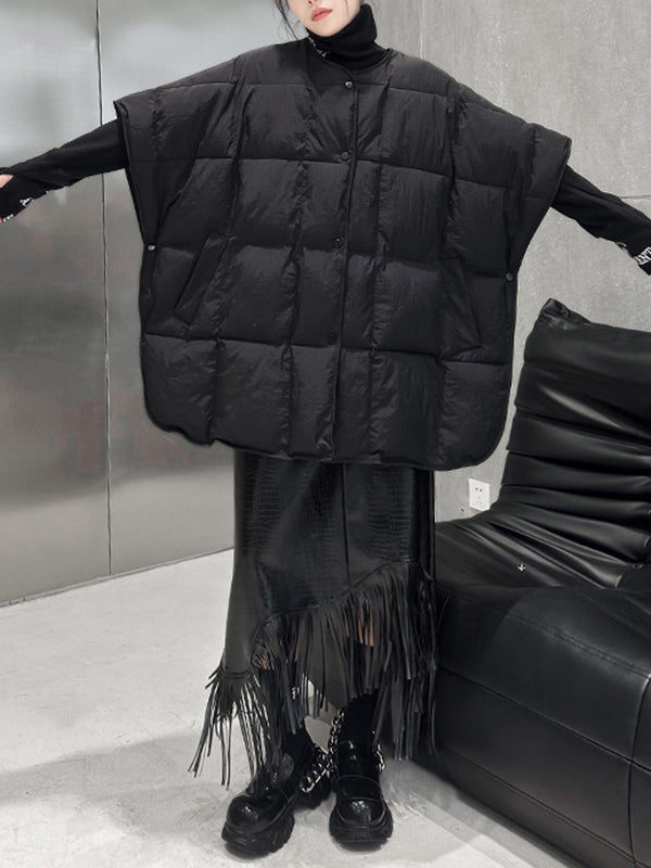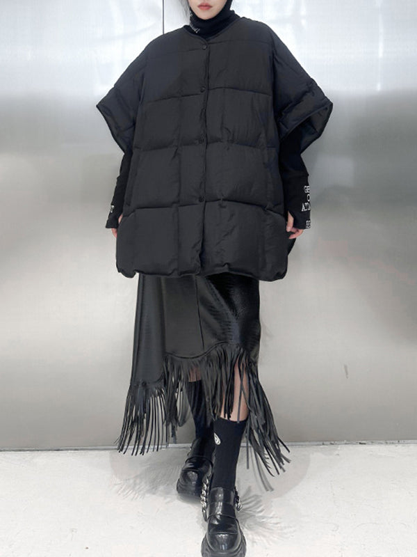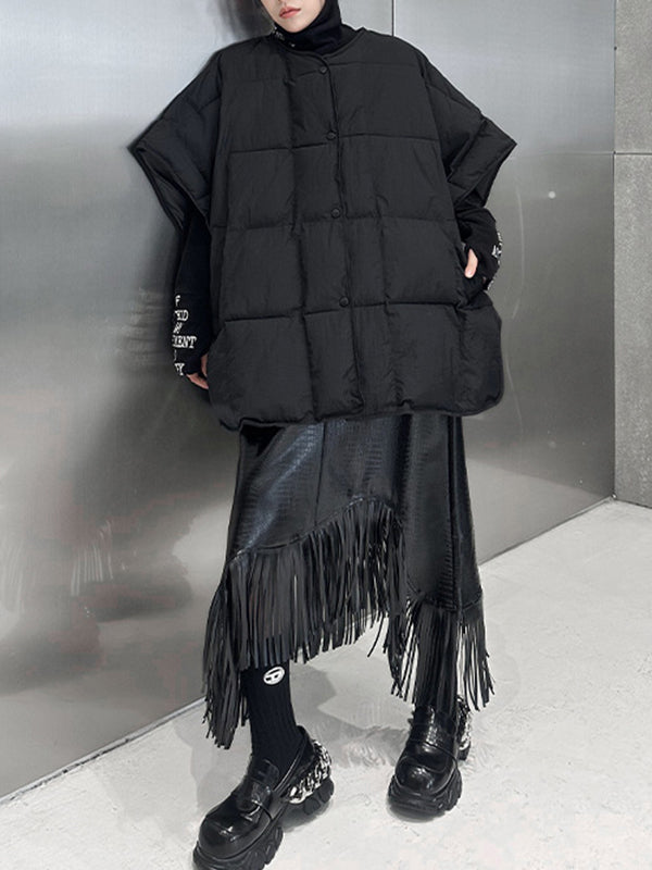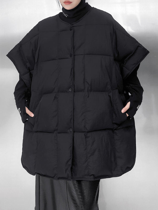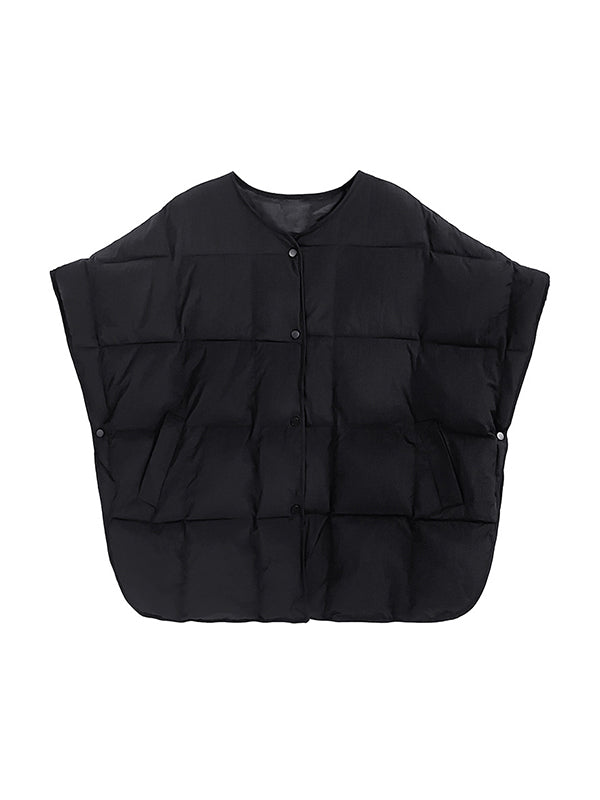Batwing Sleeves Half Sleeves Buttoned Solid Color Round-Neck Padded Vest