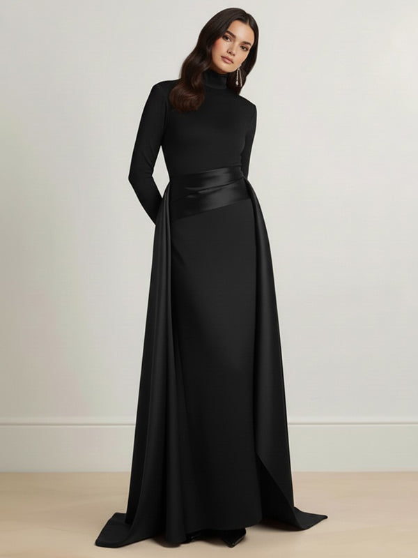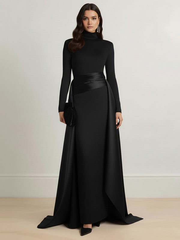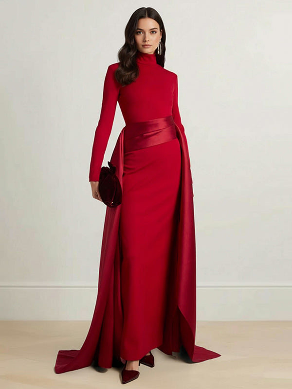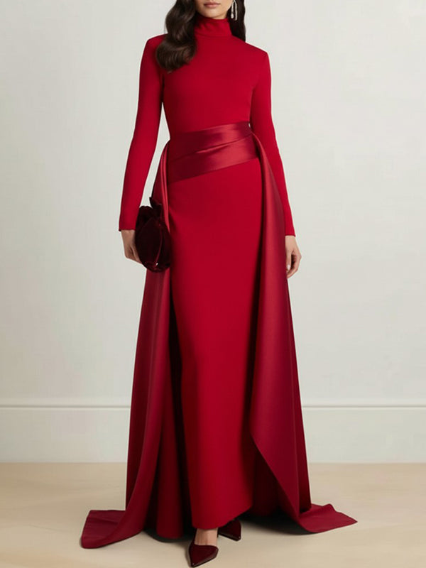 Bodycon Elasticated Waist Asymmetric Solid Color Split-Joint High Neck Maxi Dresses