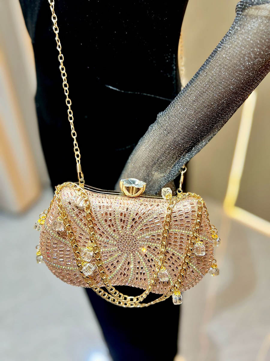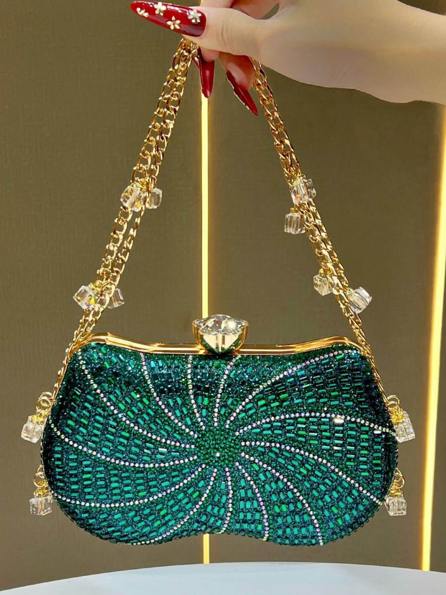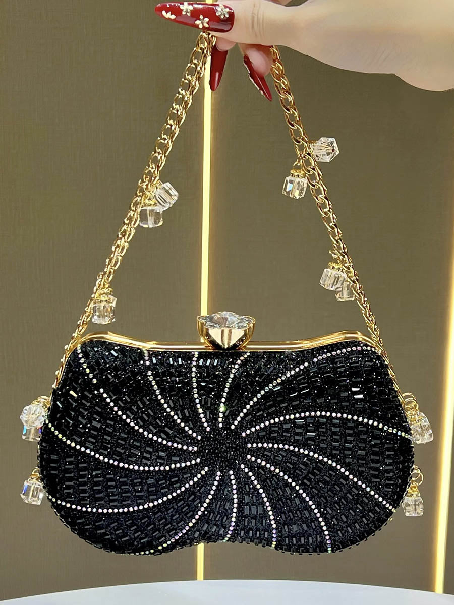 Chains Geometric Lock Rhine Stones Shiny Evening Bags & Clutches Mini Bags